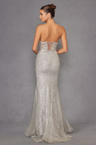 Sequin Fitted Gown in Black or Silver | Strapless Formal Dress JTJT2525L