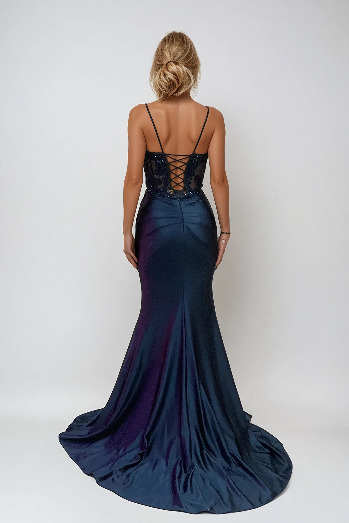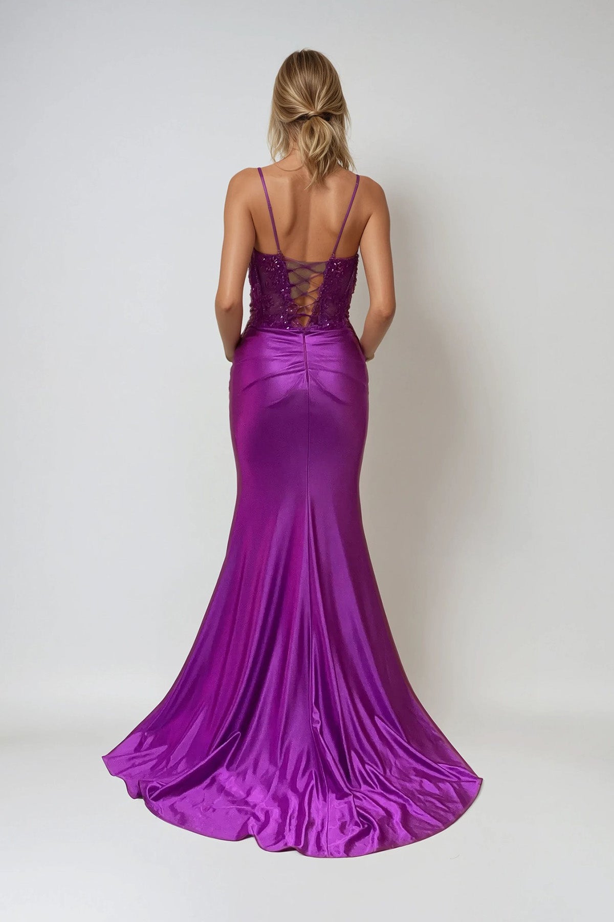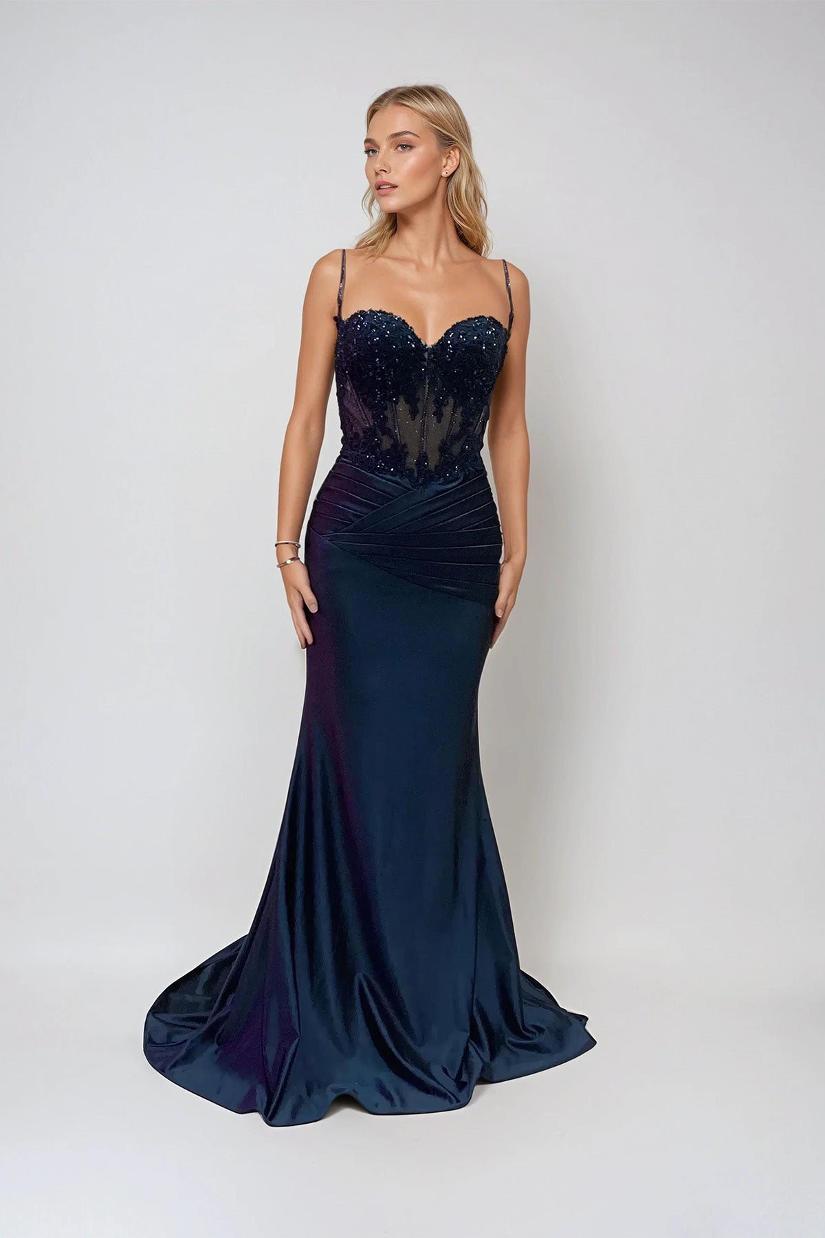 This gown balances finesse with performance. The corset bodice is engineered with precision, contouring the body like a finely tuned chassis, while intricate detailing reflects the focus and craftsmanship behind every winning lap. The smooth skirt flows with controlled momentum, built for a clean line and powerful finish. Designed for those who lead with confidence, this gown delivers elegance driven by purpose, discipline, and unmistakable presence.