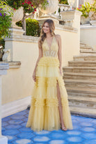 Ruffled Prom Gown w/ Floral Lace Embellished Bodice & Halter Neckline JTJT2556S