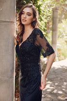 Featuring a stunning beaded design and made with 100% polyester, this dress is crafted to impress. With its long length, illusion v-neckline, and open v-back, it offers a flattering and elegant look for any special occasion.