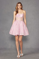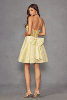 Strapless A-Line Fashion Forward Mesh Dress w/ Scoop Neckline & Back Bow JT982S