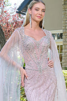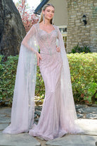 Queen Anne Neckline Luxury Mesh Gown w/ Cape Sleeves & Sheer Back GLGL3664