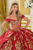 Dazzling Off The Shoulder Quinceanera Gown w/ Front Broche & Back Bow GLGL3791