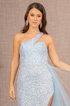 Sequin Glitter Asymmetric Mermaid w/ Long Waist Mesh Layer Long Prom Dress GLGL3133