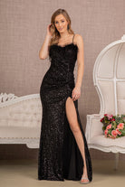 Sequin Ruched Side Mermaid w/ Feather on Neckline Long Prom Dress GLGL3113