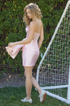 This striking dress features a chic and timeless strapless design crafted from luxurious stretch satin material, offering both comfort and style. The semi-sweetheart top adds a touch of romance and elegance to the ensemble. The illusion boned beaded waistline showcases intricate detailing that exudes sophistication and glamour, making it a perfect choice for formal events. The straight lace-up back not only provides a secure fit but also adds a touch of modern flair to the look. Ideal for special occasions or evening affairs, this dress is designed to make a statement. Pair it with sleek heels and minimalistic accessories to allow the intricate beading to shine and create a captivating and refined outfit that exudes confidence and grace.