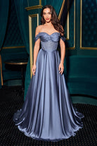 STRAPLESS BEADED SATIN A-LINE DRESS CDCD297