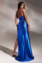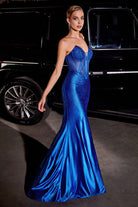 Royal Blue & Black Strapless Corset Gown with Sheer Bodice | Glitter Slit Evening Dress CDCDS419