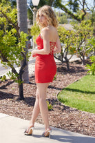 Strapless Dress with Illusion Deep V Bustline, Beaded Top Edges, Side Waist Bead Design NXY224