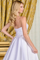 Strapless straight across neckline embellished waist a line wrap over wedding dress train GLGL3718