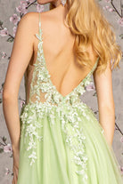 3D Flower Glitter Sheer Bodice Mesh A-line Side Slit Long Prom Dress GLGL3202