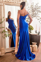 Red, Royal Blue | One-Shoulder Embellished Gown with Beaded Fringe & High Slit CDCDS449