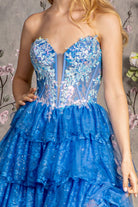 Embroidery Sequin Sheer Bodice Ruffled Skirt Mesh A-line Long Prom Dress GLGL3461