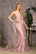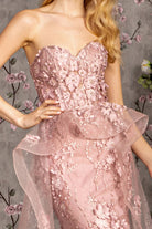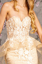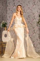Jewel Strapless Mesh Mermaid w/ Waist Drape Long Prom Dress GLGL3257