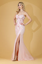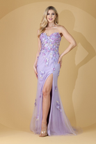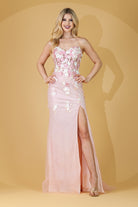 3D Flowers Sweetheart Sheer Back Side Slit Long Prom Dress