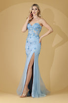 3D Flowers Sweetheart Sheer Back Side Slit Long Prom Dress ACBZ9019
