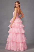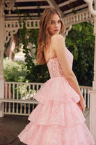Featuring a stunning illusion v-neck and a delicate tulle ruffle skirt, this long prom dress is sure to turn heads. The open lace up back and sleeveless, spaghetti strap design adds a touch of elegance to this dress.