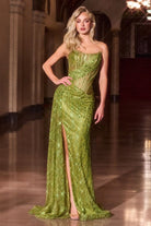 Strapless Fitted Glitter Embellished Side Slit Long Prom Dress