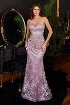 Elevate your look for your special occasion with this captivating strapless mermaid gown. The fitted bodice creates a stunning waistline and is framed by a strapless bust and a modest coverage cape.