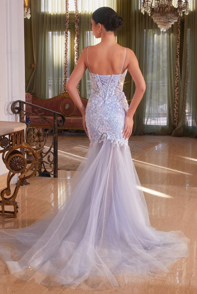 FLORAL SEQUINED LIGHT BLUE MERMAID GOWN CDCB148