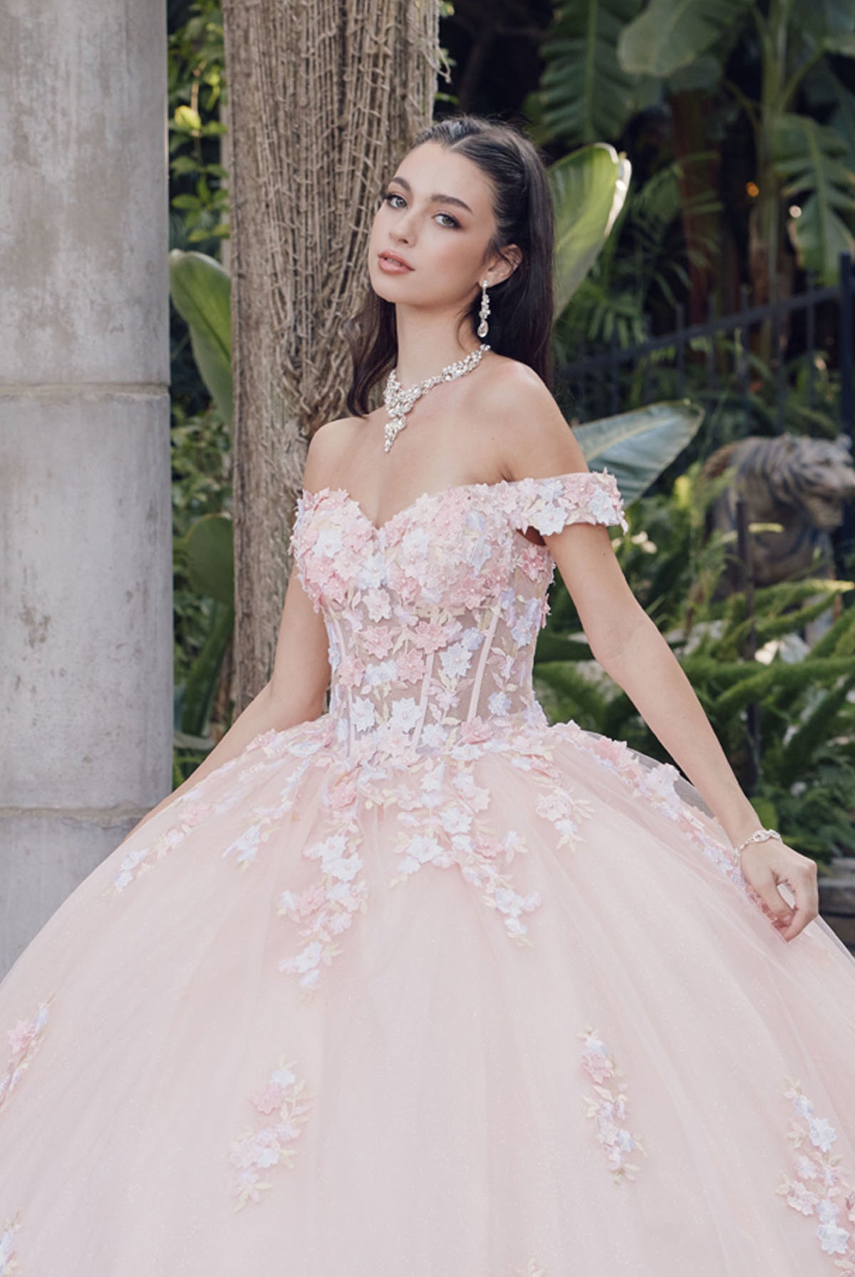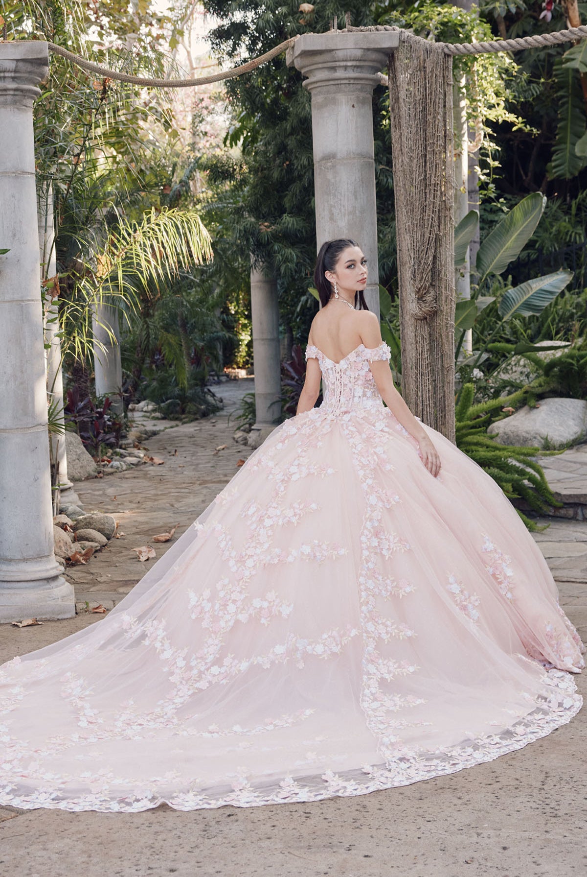 Off Shoulder Embroidered Lace Open Corset Back Long Quinceanera Dress JTJT1460J