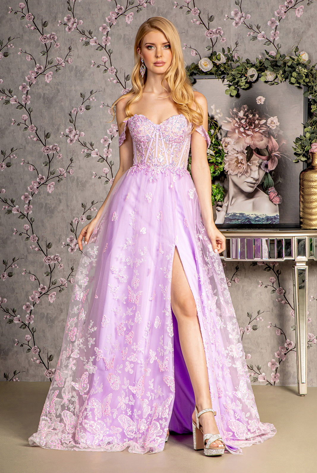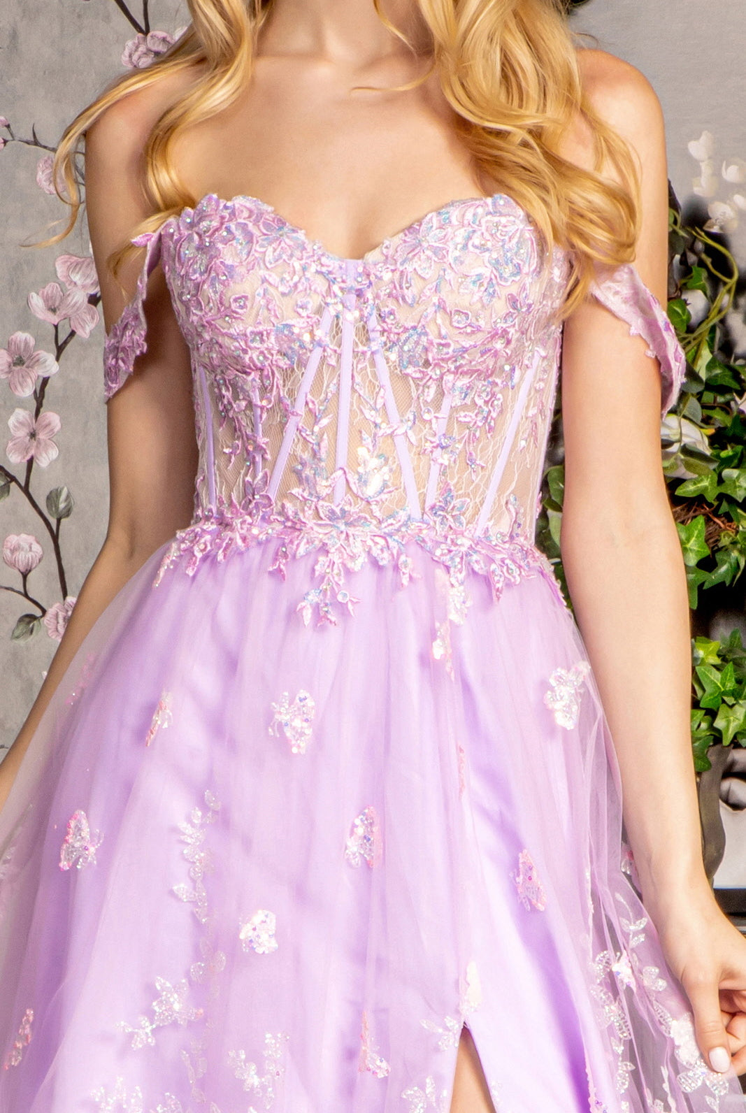 Sequin Bead Sheer Bodice Off Shoulder Mesh A-line Long Prom Dress GLGL3453