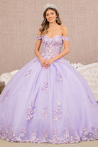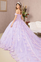 3D Flower Applique Jewel Mesh w/ Long Tail Long Quinceanera Dress GLGL3182