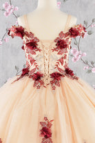 The back features both a corset and zipper for a secure fit, while the delicate applique, beads, embroidery, and glitter add a touch of sparkle. Designed in a classic ball gown silhouette, this dress will make any kid feel like a princess.