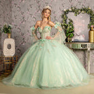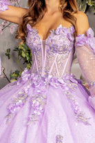 3D Flower Jewel Sheer Bodice Mesh w/ Long Sleeves Long Ball Dress GLGL3486