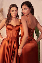 A-Line Satin Bustier Side Slit Long Evening Dress CDCD337