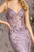 Bead Embroidery Sheer Bodice Glitter Crepe Mermaid Long Prom Dress GLGL3399