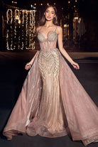 BEADED FITTED GOWN WITH OVERSKIRT CDCD863