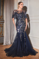 BEADED MERMAID GOWN WITH REMOVABLE CAPE CDCDS438
