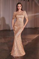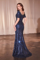 CAP SLEEVE FITTED SEQUIN GOWN CDCB151