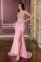 Hot Stones Embellished Long Pageant Gown w/ Corset Bodice & Lace Up Back CDCC3902