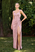 Off The Shoulder Bridesmaid Luminescent Chiffon Gown w/ Elegant Leg Slit CDCD417