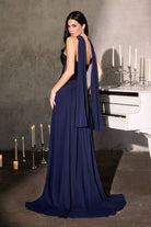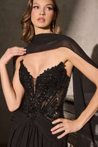 Sleeveless A-Line Chiffon Gown w/ Beaded Bodice & Matching Scarf CDCD673