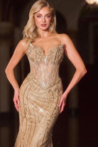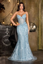 Fully Embellished Long Mermaid Pageant Gown w/ Corset Bodice & Sweetheart Neckline CDCDS557