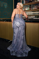 This fit-and-flare gown boasts a plunging neckline and delicate thin straps, creating a striking and graceful silhouette. Intricate crystal beading and embellished lace cascade over tulle, accentuating the cinched waistline and structured bodice. With its lace-up corset back, this dress is an exquisite choice for black tie events, galas, or formal occasions like prom. Key Features: Silhouette: Fit & flare Design: Plunging neckline, thin straps & body contouring embellishment Fabric & Material: Crystal beading, embellished lace & tulle Fit Detail: Structured bodice, cinched waistline & lace-up corset back Occasions: Ideal for black tie events, galas, or formal occasions like prom Sizing: Available in sizes 20 - 24