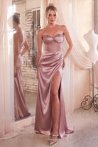 Black, Blue, Yellow, Red Strapless Corset Satin Gown with Slit CDCD295