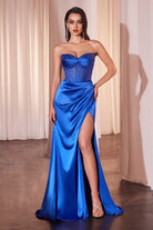 Black, Blue, Yellow, Red Strapless Corset Satin Gown with Slit CDCD295