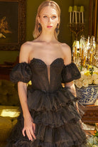 Embellished Sweetheart Neckline Lace Corset Ruffle Tiered Skirt With Detached Lace Puff Sleeve