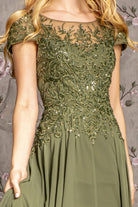 Embroidery Bead Sheer Bodice A-line Chiffon Long Mother Of The Bride Dress GLGL3491