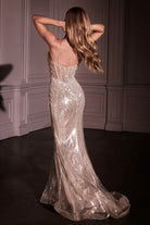Ivory Sequin Mermaid Gown with Sheer Skirt and Beaded Bodice