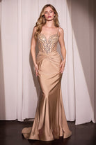 Beaded Sheer Corset Mermaid Gown with Draped Waist – Black & Red
