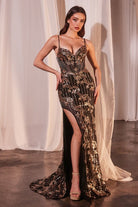 Black Gold | Sequin Embellished Gown with Sweetheart Neckline and High Slit CDCM358