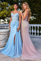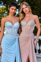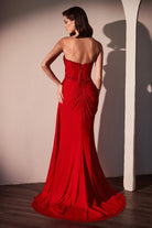 Strapless Beaded Corset Gown with High Slit & Draped Skirt CD770