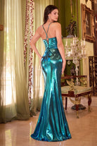 Teal Metallic | Iridescent Sweetheart Gown with Rhinestone Bodice & Thigh-High Slit CDCD352