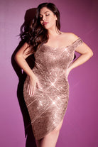 Gathered Sequin Rhinestone Off Shoulder Sleeveless Plus Size Midi Prom & Homecoming Dress
