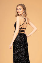 Make an impression at your next special event with the Halter Neck Velvet Sequin Long Dress Ruched Bodice GLGL3080. This sophisticated velvet mermaid dress features a ruched bodice with halter neck, wide open back with spaghetti strapped lace-up closure and sparkly sequins adorning the bodice to skirt. The perfect piece for an elegant look!